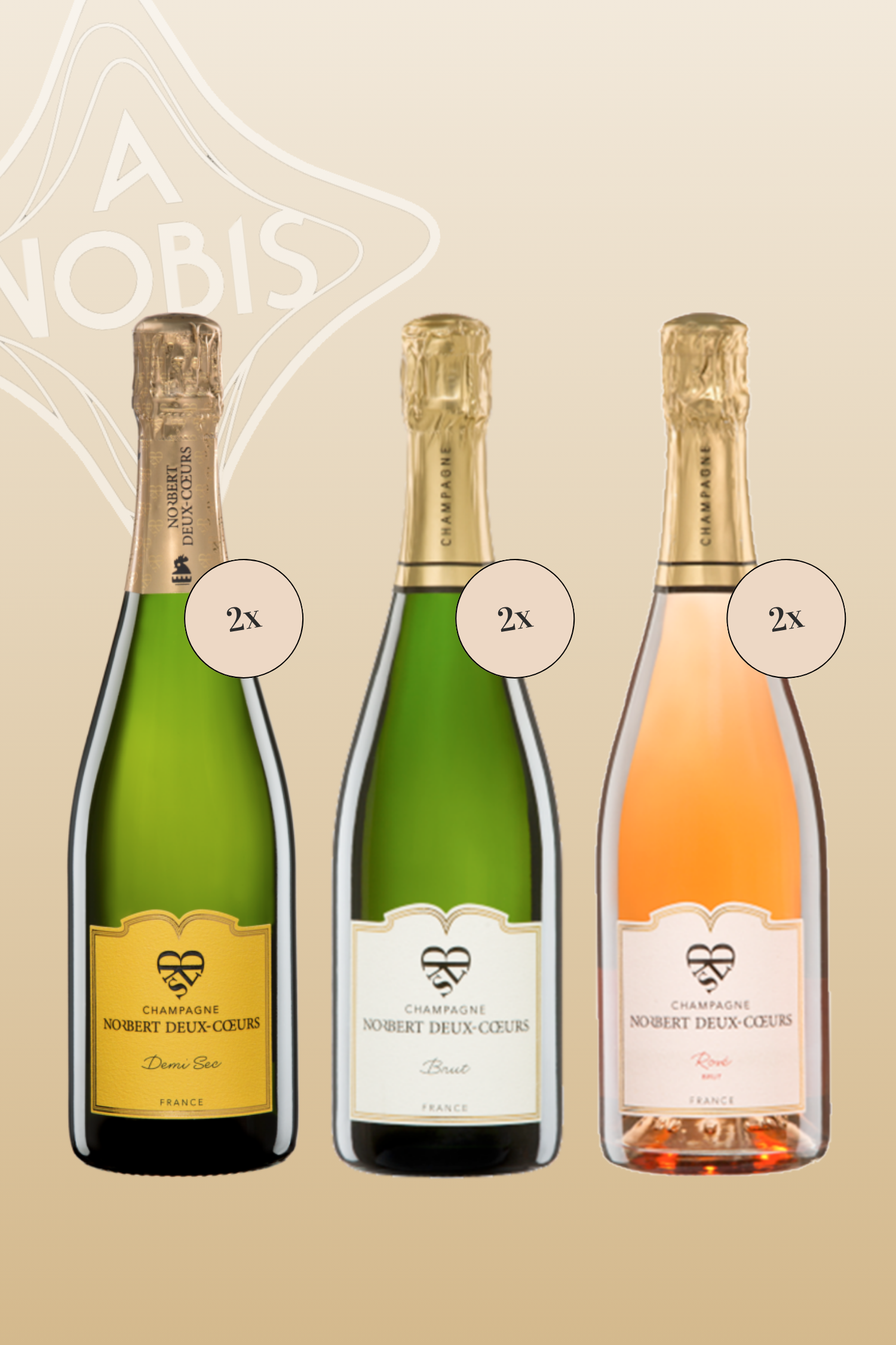 Dieses Paket vereint die drei charakterstarken Champagner unserer hauseigenen Marke Norbert Deux-Cœurs, die unter der Leitung von Norbert Szigeti direkt in der Champagne vinifiziert werden. Jeder der drei Champagner bringt eine ganz eigene Stilistik mit – elegant, ausgewogen und mit viel Liebe zum Detail.